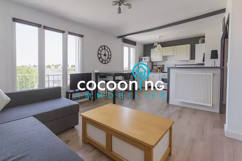 À vendre : appartement 2 pièces lumineux de 49 m2, situé au 4e étage d’une copropriété dans une rue privée avec accès securisé par une barrière, dans le quartier de Doulon.