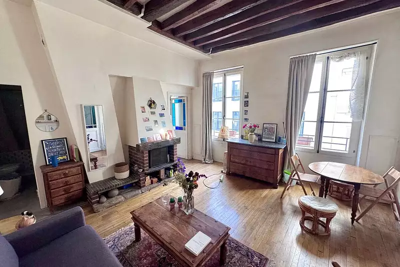 75011 - Métro Bastille . A la lisière du Marais et du 4ème arrondissement. Appartement 2 pièces de 47m2 au 2eme étage d'un immeuble ancien.