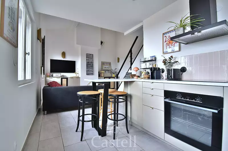 Votre agence castell immobilier agde, vous présente à vendre : Superbe appartement T3 en duplex, rénové avec goût, idéalement situé à proximité immédiate des commerces, des écoles et des transports. Ses caractéristiques : Superficie confortable et agencement optimisé Pièce de vie lumineuse avec charme de l'ancien revisité et belle hauteur sous plafond Cuisine moderne entièrement équipée Belle chambre aux volumes généreux et sa mezzanine aménagée en espace bureau Coin nuit à l'étage Salle d'eau contemporaine Climatisation / Double vitrage / Fibre optique Ses atouts : Rénovation de qualité Aucun travaux à prévoir Partiellement meublé Idéal résidence principale ou investissement locatif Bien situé au dernier étage (sans ascenseur) Vue dégagée sur les toits et les Pyrénées Un appartement alliant confort moderne et charme du duplex Ce bien vous est proposé par Julien SALMON, agent commercial (RSAC Béziers 808 123 780)