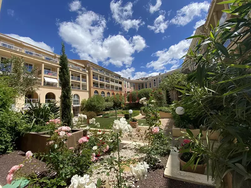 Exposé au sud , cet appartement jouit d’un ravissant jardin privé, une piscine , dans une résidence entièrement sécurisée nuit et jour , au cœur de la ville, offrant de nombreux services tel que , liaison d appel d’urgence, restauration , nombreuses animations, diverses activités , caméras de surveillance , femme de ménage, factotum etc..) . Vous découvrirez un appartement de type 2 très lumineux, parfaitement distribué, tout en véritable parquet bois , d’un parfait confort, et entièrement climatisé.
