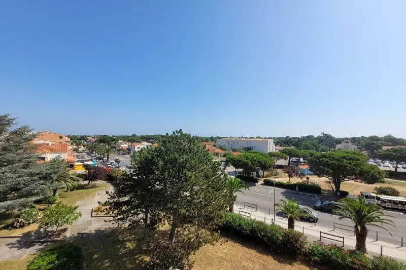 Proche du Centre Plage, Au 3ème étage avec ascenseur, Appartement T3 de 49m2, composé d'un hall d'entrée, séjour donnant sur terrasse vue dégagée, cuisine indépendante, salle d'eau douche à l'italienne, 2 chambres avec terrasses de 5m2. Double vitrage, volets roulants électriques. Grand parking avec portail électrique, stationnement libre. Possibilité de garage.