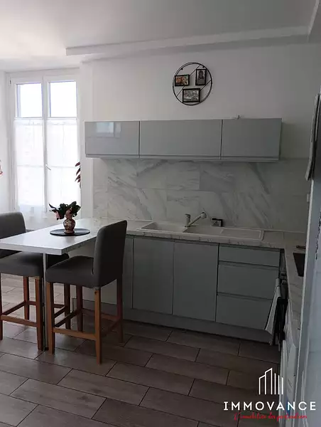 Situé au 2? étage (sans ascenseur), ce bien lumineux bénéficie de hauts plafonds et d'une rénovation complète, alliant cachet de l'ancien et confort moderne. Il se compose d'une pièce de vie de 19m2, ouverte sur une cuisine entièrement équipée, de deux chambres dont une sert aujourd'hui de salon, d'une salle d'eau avec toilettes.