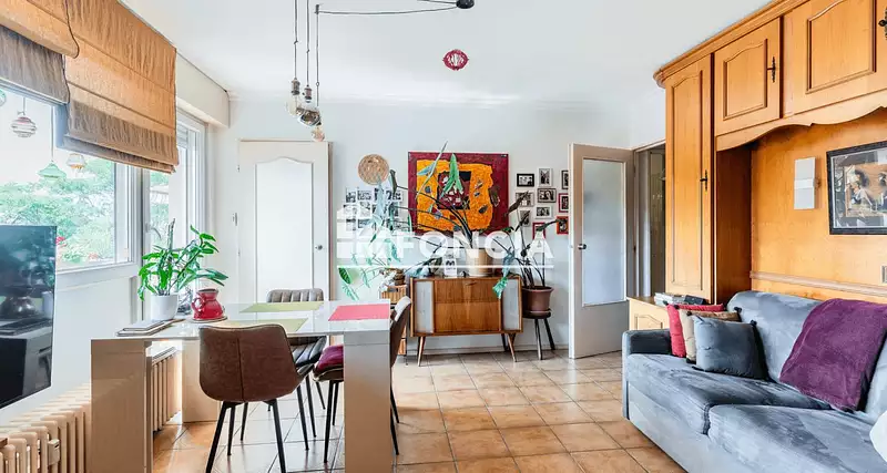 Le salon/séjour, spacieux et lumineux, donne accès à une agréable terrasse, idéale pour profiter des beaux jours ou installer un petit coin détente en extérieur.