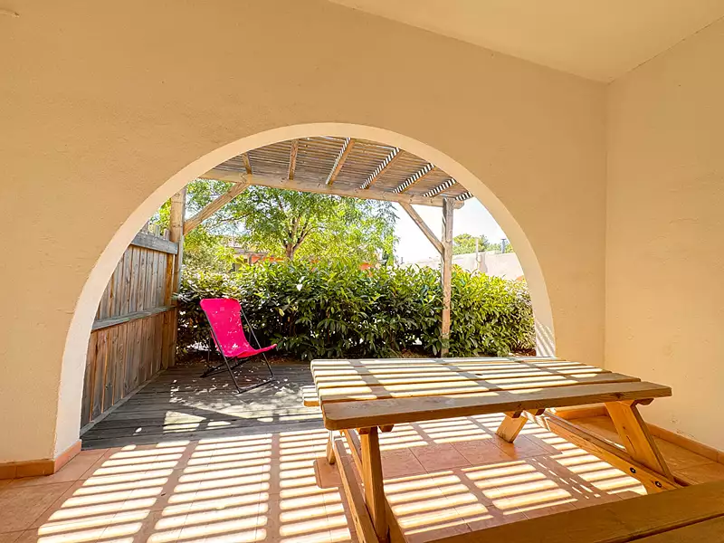 MONTICELLO - APPARTEMENT /MAISON A 800 m de la plage, et des commerces, MARE IMMO vous présente cet appartement/maison de 49.86 m² en loi carrez avec terrasse et parking attribué. La résidence de petite taille et bien entretenue compte 10 appartements au total. Cet appartement/maison dispose de sa propre entrée, et comprend une entrée sur la pièce de vie ouvrant sur la terrasse, une cuisine indépendante équipée, une chambre avec rangement, salle d'eau avec WC. Au 1er étage 1 chambre avec WC et lave-mains. Ce bien offre de belles perspectives d'évolution pour en faire un lieu de vie principale particulièrement agréable tout comme une résidence secondaire. (5.00 % honoraires TTC à la charge de l'acquéreur.) Copropriété de 10 lots ().