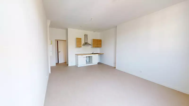 Nous retrouvons une entrée, un grand salon cuisine ouverte aménagée et équipée de 24 m² environ, deux chambres, une salle d'eau, et un W.C.