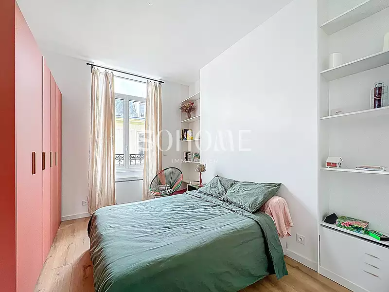 Une chambre dont l'espace a été optimisée offre un espace de repos agréable.