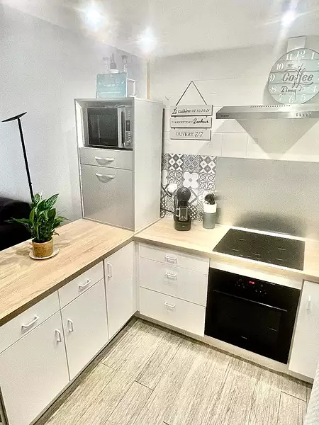 Cet appartement est composé d'une entrée, un séjour lumineux avec une cuisine américaine et équipée, une chambre plus une petite chambre d'appoint de 9m2 idéale pour un enfant.