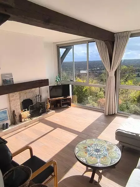 Il se compose d'une entrée, un salon avec cheminée donnant sur une large baie vitrée, une