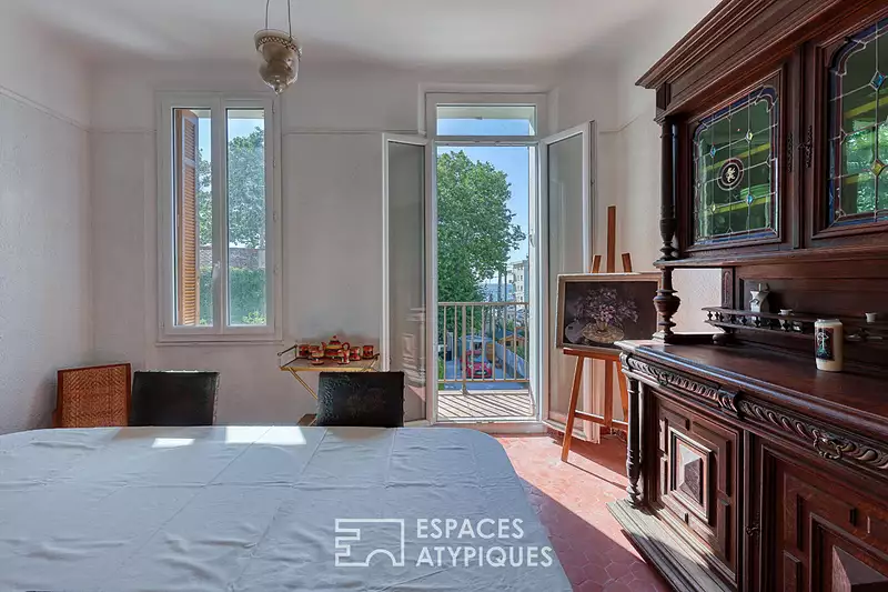 A La Seyne-sur-Mer, dans le quartier prisé de Mar Vivo, cet appartement d'une surface de 50 m² prend place au premier étage d'une maison de ville. Baigné de lumière et bénéficiant d'une belle hauteur sous plafond, ce deux-pièces au charme authentique profite d'une exposition plein sud avec une vue dégagée, laissant entrevoir la mer, à seulement 100 mètres de la plage. Les volumes généreux, la clarté des pièces et la distribution traversante créent une atmosphère chaleureuse et paisible. L'appartement se compose d'une chambre, d'un vaste séjour avec salle à manger et d'une cuisine indépendante. Des éléments anciens tels que les tomettes, les menuiseries en bois et les vitraux d'époque viennent souligner le caractère singulier du lieu. En l'état d'usage, le bien nécessite des travaux de rénovation, offrant ainsi un potentiel de transformation pour concevoir un intérieur à son image. L'accès se fait par un escalier privatif. Le balcon filant prolonge idéalement les espaces de vie intérieurs. L'environnement calme et la vue sur les pins méditerranéens procurent une sensation de calme, tout en étant à deux pas de la mer. Le quartier Mar Vivo, familial et vivant, dispose de toutes les commodités accessibles à pied : commerces, écoles, restaurants et transports en commun. Avec sa situation privilégiée à proximité immédiate du littoral et son cachet des années 40, ce bien présente les traits d'un appartement de charme à réinventer. Un lieu rare, idéal pour une résidence principale ou secondaire, dans l'un des secteurs les plus convoités de La Seyne-sur-Mer. Bien soumis au régime de la copropriété comprenant 3 lots Charges annuelles ; .1030 euros Pas de procédure en cours. Les informations sur les risques auxquels ce bien est exposé sont disponibles sur le site Géorisques : www.georisques.gouv.fr Informations pratiques CLASSE ÉNERGIE : F(392 kWh/m²/an) / CLASSE CLIMAT : C (20 kg CO2/m²/an). Montant estimé des dépenses annuelles d'énergie (2021) : entre 1313 et 1777 euros. Samuel ARZOINE 07 80 14 47 00 Copropriété de 3 lots (Pas de procédure en cours).