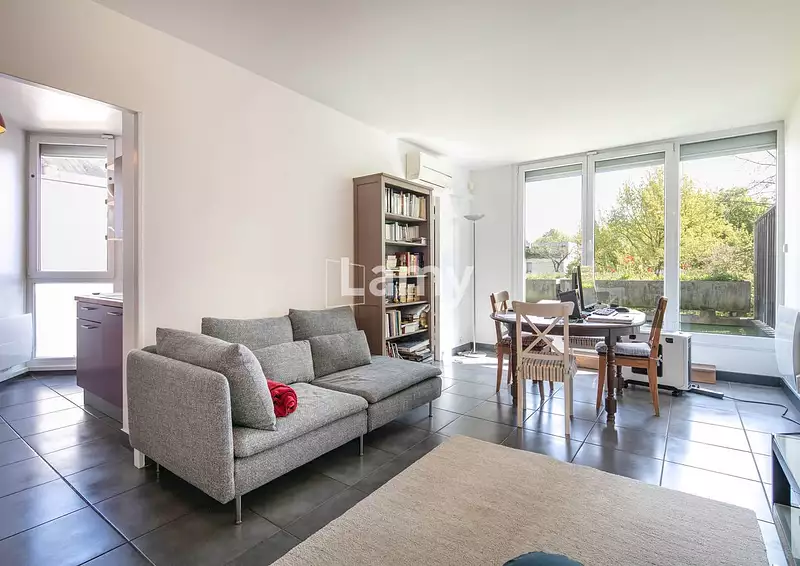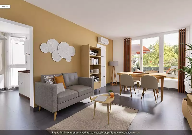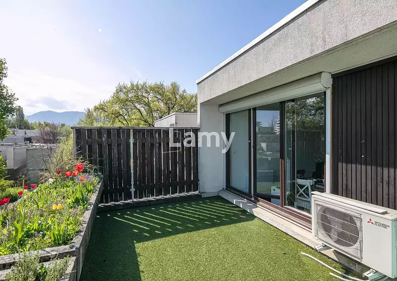 MEYLAN, au calme de l'allée des Mitaillères, joli 2P+C refait à neuf avec de belles prestations (cuisine aménagée et équipée, climatisation, fenêtres PVC double vitrage, volets roulants motorisés) et profitant d'une terrasse de 20m² sans vis à vis. Cellier en annexe. Parking privatif à la copropriété. Proche commodités.
