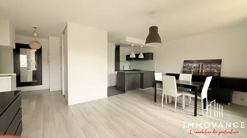 Il se compose d'une entrée avec placards, d'une spacieuse pièce à vivre de 28 m² avec cuisine entièrement équipée, d'une chambre avec accès direct à la salle d'eau et d'un WC séparé.