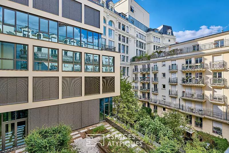 Dans l'enceinte des anciens grands magasins Dufayel, à proximité du nouvel espace de coworking WOW, et au calme de cours arborées d'une résidence récente datant de 2001, cet appartement de 49,92 m2 Carrez avec deux balcons est un véritable havre de paix. Situé au quatrième étage par ascenseur, le bien présente un plan équilibré, parfaitement optimisé et sans perte de place. Il s'ouvre sur un vaste et lumineux espace de vie de 34 m2 intégrant un salon, un coin salle à manger et une cuisine ouverte. Un premier balcon de 0,5 m2 exposé ouest offre une vue plongeante sur la verdure de la cour. La chambre de 11 m2 s'agrémente d'un grand dressing et bénéficie également d'un balcon de 0,5 m2 exposé ouest. Elle s'accompagne d'une salle de bain et des toilettes indépendantes. Un cellier au premier étage vient compléter ce bien soumis au régime de copropriété. Possibilité d'acquérir un box au deuxième sous-sol de l'immeuble, en sus du prix. Métro Anvers ou Château-Rouge (Lignes 2 et 4) Contact : Fabrice +33 7 86 75 71 32 Copropriété de 126 lots - dont 126 lots habitation. (Pas de procédure en cours). Charges annuelles : 1696 euros. FABRICE DERRIEN (EI) Agent Commercial - Numéro RSAC : 951 254 671 - PARIS.