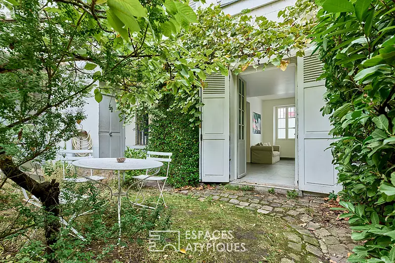 Dans une maison typiquement montmartroise, ayant abrité l'atelier du peintre Gen Paul, cet appartement en rez-de-chaussée de 50,64 m² (48,33 m² Carrez) jouit naturellement d'un jardin de 22 m2. Passé le jardin exposé sud-ouest, l'entrée s'ouvre sur un espace de vie traversant de plus de 30 m², comprenant un salon d'angle exposé sud-est et une cuisine dînatoire ouverte. La pièce présente une hauteur sous plafond de 2,70 m et s'agrémente de pierres apparentes. La chambre principale intègre un placard-dressing, tandis qu'une seconde pièce, modulable selon les besoins, peut servir de bureau ou de petite chambre. Une salle d'eau avec toilettes et un placard-buanderie accompagnent l'ensemble. Une cave complète ce bien soumis au statut de copropriété. Rare et plein de charme, au sommet du haut Montmartre, cet appartement cultive l'art de vivre comme dans une maison, au coeur d'un village urbain. Métro Lamarck-Caulaincourt ou Abbesses (ligne 12) Contact : Fabrice +33 7 86 75 71 32 Copropriété de 6 lots - dont 5 lots habitation. (Pas de procédure en cours). Charges annuelles : 1525 euros. FABRICE DERRIEN (EI) Agent Commercial - Numéro RSAC : 951 254 671 - PARIS.