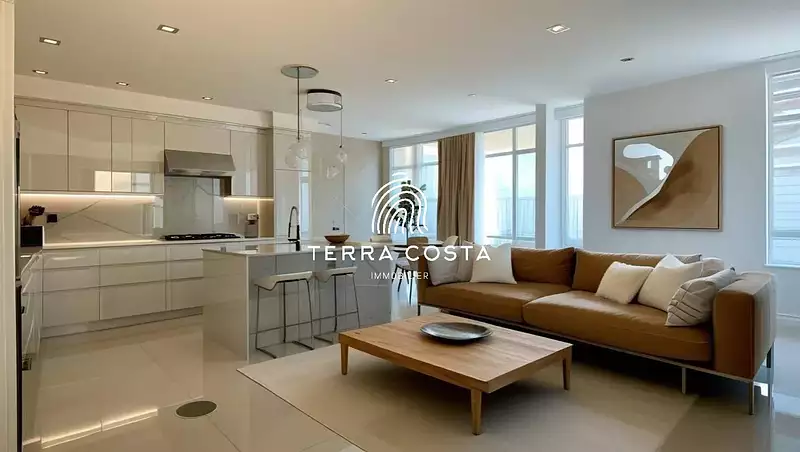 Il se compose d’un séjour lumineux avec cuisine ouverte, donnant sur une belle terrasse de plus de 15 m², d’une chambre avec placard, d’une salle d’eau et de WC séparés.