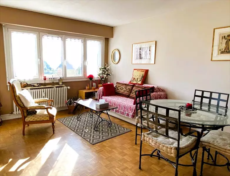 L'Office vous propose ce coquet T2 de 51 m², avec parking privatif et grande cave (9 m²), à 15 minutes à pied du centre ville.Situé au 4ème et dernier étage (sans ascenseur) d'une copropriété suivie, il est traversant et lumineux, et doté d'une très jolie vue montagnes. Il distribue une entrée, une cuisine séparée et équipée ouvrant sur une loggia fermée, un séjour de 18 m² et une chambre de 11 m² donnant tous deux sur un balcon exposé sud (4.3 m²), une salle de bains et des toilettes séparées.Fonctionnel, il est doté de nombreux placards.Rénové en 2013, il a été depuis régulièrement entretenu (sols, peintures, électricité, fenêtres - PVC double vitrage - et volets -alu - remplacés en 2013, chauffe-eau en 2024).Ses diagnostics gaz et électricité sont exempts de toute anomalie.Une grande cave (9 m²) et un parking privatif au pied de l'immeuble complètent ce bien.Arrêt de bus au pied de l'immeuble.Chauffage collectif urbain.Charges de copropriété annuelles 1 740 € dont 1 000 € de chauffage (avec répartiteurs 60/40). TAXE FONCIERE : 957 €Pas de procédure en cours, aucun travaux de copropriété prévu.A découvrir !Le prix s'entend honoraires de négociation compris (4.28 %) à la charge de l'acquéreur.Les informations sur les risques auxquels ce bien est exposé sont disponibles sur le site Géorisques : www. georisques.gouv.fr et sur l'état des risques annexé au DDT.