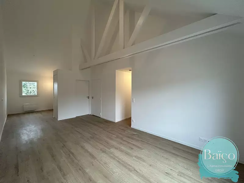 Appartement situé au cœur du bourg, à proximité des commerces.