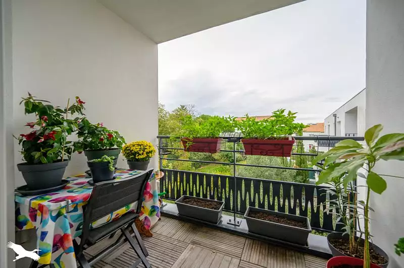Au pied des commerces, résidence de 2014, grand cellier jouxtant sur le palier, T2 composé d'une pièce à vivre avec cuisine américaine équipée donnant sur la loggia au calme avec vue sur la cime des arbres. Un dégagement sépare l'espace nuit avec sa chambre de 14m2 avec placards, la salle d'eau et les WC. Place de stationnement.