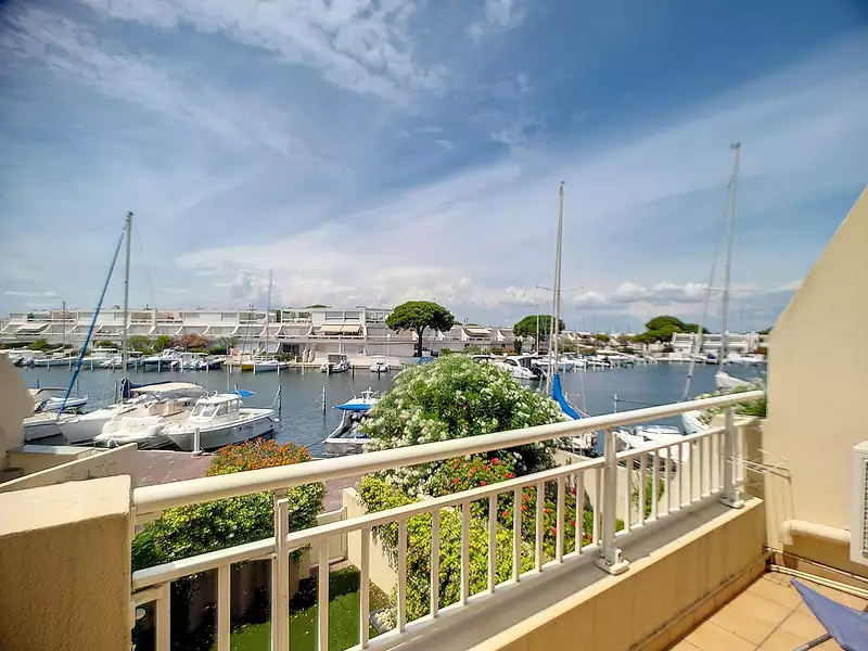 Marina d'une surface habitable de 51 m2 comprenant trois pièces principales, cuisinette, salle d'eau, WC. Balcon, terrasse en partie couverte. Vue sur appontement bateau 3,15 x 12,50. Une place de stationnement véhicule dans la résidence. Ensemble en parfait état. Clim réversible.