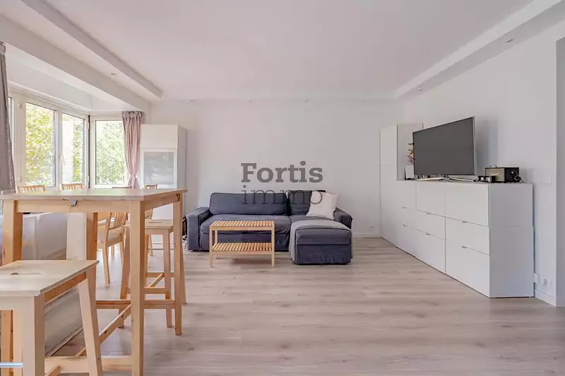 Il se compose d'une entrée avec rangements, d'un séjour agrémenté d'un bow-window, élément rare et recherché à Paris, d'une chambre donnant sur verdure, d'une salle de bains, de WC séparés et d'une cuisine moderne avec accès sur l'extérieur. L'appartement est équipé de double vitrage. Une cave complète le bien.