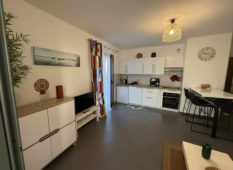 Ce T2 de 51 m² ( hors loi Carrez) dispose d’une chambre avec placard, d’une salle d’eau et d’un WC séparé. La pièce de vie lumineuse ouvre sur une terrasse fermée de 11m2 , idéale pour profiter d'un espace supplémentaire, et intègre une kitchenette fonctionnelle. Construit en 2010, l’appartement séduit par sa modernité et agréablement agencé avec goût , parfait pour un premier achat ou un investissement locatif.