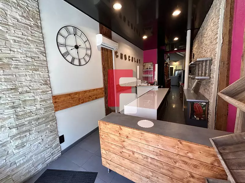Dès l'entrée, vous serez accueilli par un bel espace de vente de 17 m2, équipé de beaux comptoirs et d'espaces de rangement. À l'arrière, un laboratoire de production de 15,5 m2, fonctionnel et conforme aux normes, vous attend en excellent état. Un espace à vivre de 12,5 m2 et des wc sont également à votre disposition.