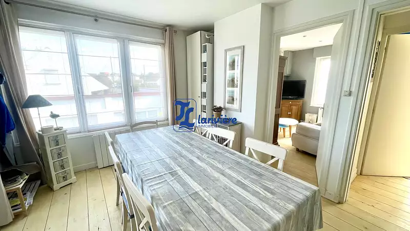 EXCLUSIVITE - AMBLETEUSE à 150 m de la plage. Appartement de 52 m², lumineux, situé au 1er étage, comprenant un salon chaleureux agrémenté d'un balcon, une salle à manger conviviale dotée d'un coin cuisine, 2 chambres, une salle d'eau, toilettes séparés. Une cave ainsi qu'un parking privé sécurisé. Une petite résidence, garantissant des charges réduites, grâce au syndic bénévole, et une ambiance paisible. Pour plus d'informations ou pour planifier une visite, contactez Justine au 06.20.11.66.52. Votre nouveau chez-vous vous attend ! (5.00 % honoraires TTC à la charge de l'acquéreur.) Copropriété de 12 lots - dont 4 lots habitation. (Pas de procédure en cours). Charges annuelles : 360 euros.