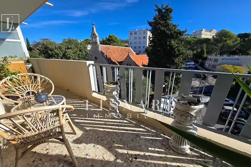 CANNES - Grand deux pièces, situé au 4ème étage sur 5, composé d'une entrée, un toilette, un séjour, une cuisine, une chambre, une salle de douche et une terrasse. Vue dégagée.