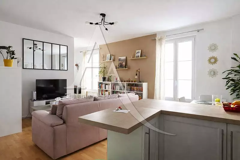 En Exclusivité dans votre agence l'Adresse de Charenton-le-Pont A proximité immédiate du métro Liberté (ligne 8) et des commerces, et à 1 minute du Bois de Vincennes, venez découvrir ce bel appartement spacieux et lumineux de 2 pièces de plus de 52m² habitable, offrant une entrée sur pièce à vivre avec cuisine américaine équipée et aménagée, un coin bureau idéal pour télétravail, une chambre avec dressing, une salle d'eau et WC séparé. Vous pourrez profiter d'une courette à usage exclusif, d'une cave en sous sol et d'un local vélo extérieur individuel . Coup de coeur assuré ! Copropriété de 109 lots - dont 71 lots habitation. Charges annuelles : 1600 euros.