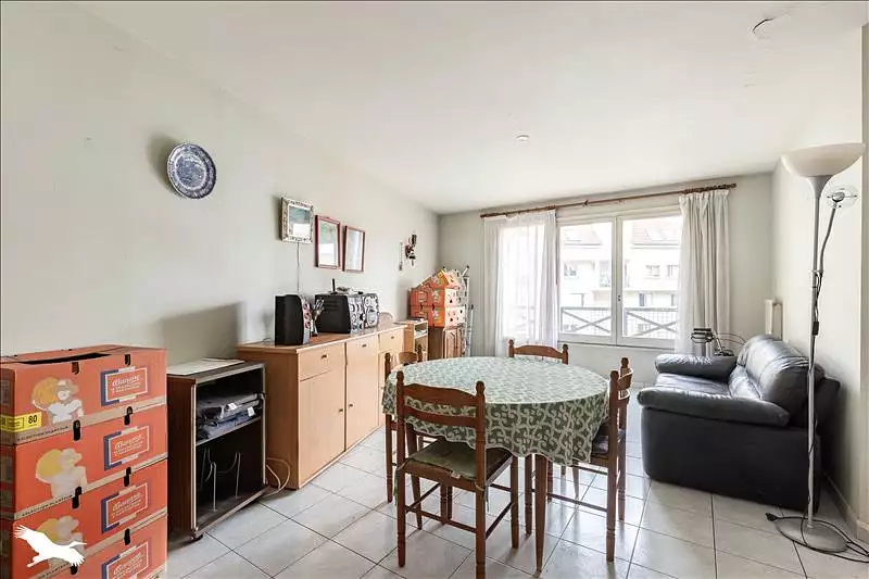 Proche transports, écoles et commerces. Appartement de deux pièces traversant composé, d'une entrée avec placards, d'un séjour très lumineux, d'une cuisine, d'une chambre et d'une salle de bains avec wc. En annexe, un garage fermé en sous-sol. Idéal investissement ou 1ère acquisition.