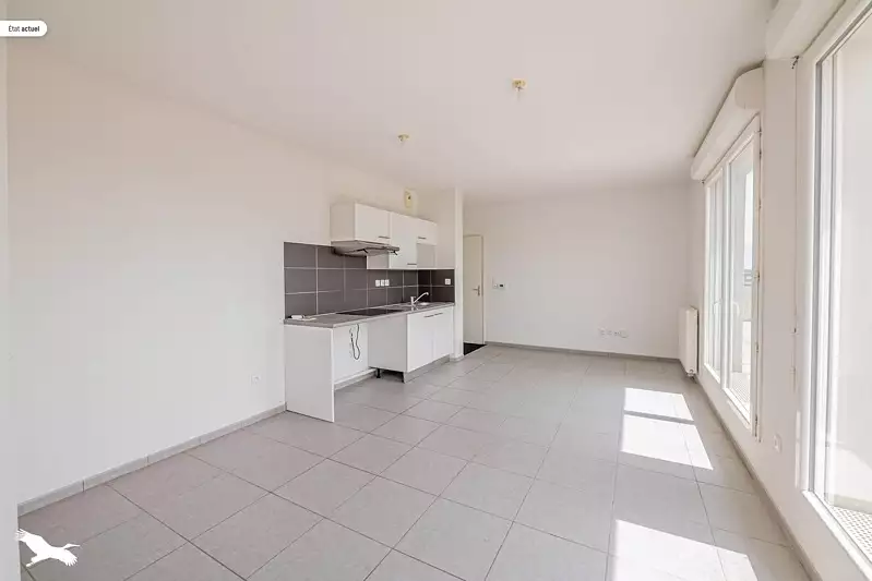 A vendre au 4ème et dernier étage, un T3 dans une résidence sécurisée à proximité des commerces et du Tram A. Il se compose d'un espace de vie lumineux donnant sur une terrasse d'environ 26m², une cuisine ouverte, deux chambres avec placard, une salle d'eau et wc. Une place de parking en sous-sol. Proposition d'aménagement virtuel non contractuelle en dernière photo.