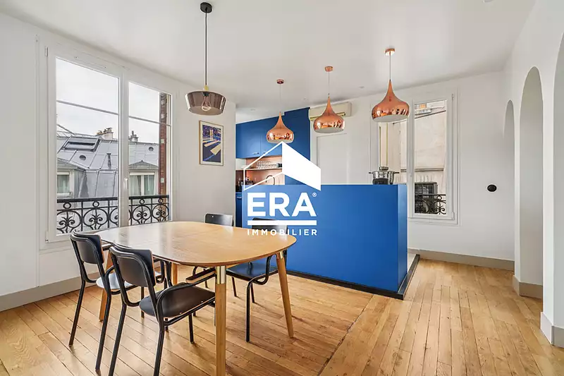 Exclusivité ERA Villiers. PARIS III, Marais, idéalement situé Métro Rambuteau, cet appartement entièrement refait récemment se situe au 4ème étage par l'escalier principal. Très lumineux grâce à sa double exposition Est Ouest, il se compose d'une grande cuisine dînatoire prolongée du salon donnant un sentiment d'espace traversant, d'une chambre avec rangements, d'une salle d'eau avec W.C. Cet appartement refait avec goût vous séduira pas la qualité de ses prestations, sa distribution, sa climatisation et sa lumière.