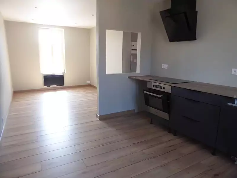 Entrée, pièce de vie avec cuisine ouverte aménagée et équipée et coin repas, 2 chambres, salle de douches à l'Italienne, wc.