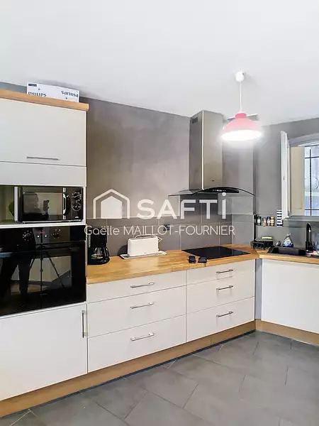 Les aménagements modernes, tels que la cuisine équipée et les finitions de qualité, ajoutent une touche contemporaine à cet appartement chaleureux. Les menuiseries en simple vitrage ajoutent du cachet à l'ensemble. Le sol alterne entre parquet et carrelage, offrant un mélange harmonieux entre chaleur et praticité.