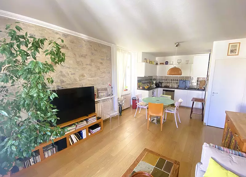 Dans un quartier calme et résidentiel de Bayonne, à proximité des commerces, à vendre très bel appartement rénové à l'ambiance chaleureuse et lumineuse. Ce bien situé au premier étage d'une petite copropriété comporte deux belles chambres, une cuisine ouverte sur salon pour un une jolie pièce de vie de 25 m², un WC indépendant, une salle d'eau, un balcon filant et un grenier offrant dix mètres carrés de rangements supplémentaires. Libre en juin 2026. (5.60 % honoraires TTC à la charge de l'acquéreur.) Copropriété de 10 lots (Pas de procédure en cours). Charges annuelles : 690 euros.