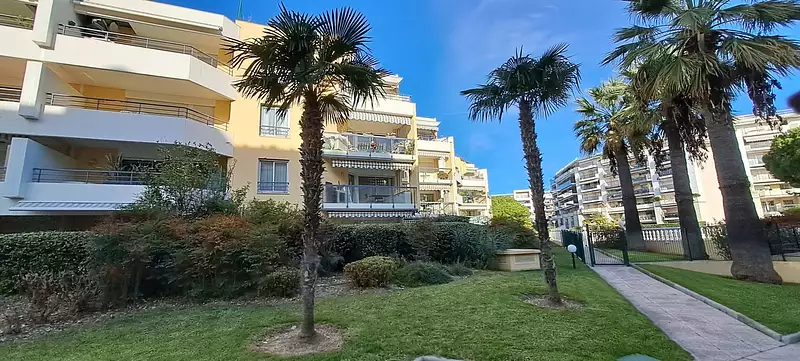 immeuble résidentiel, parc arboré, espaces verts, piscine, gardien, plage à 100m, calme, spacieux et lumineux deux pièces de 53m2 + terrasse couverte de 9m2, sud est, vue dur parc et piscine, rangements, cuisine équipée, parking sous sol. pour visiter tel