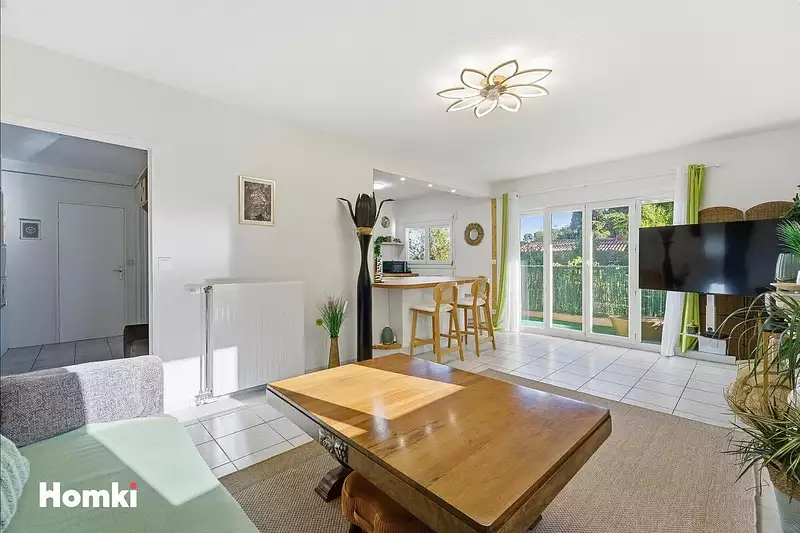 Il se compose d'un séjour lumineux de 21,17 m² avec cuisine ouverte, donnant accès à une belle terrasse de 13,37 m² offrant une vue dégagée sur la verdure, idéale pour profiter du soleil et des beaux jours.
