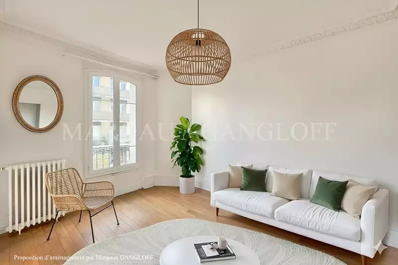 - joli salon avec parquet et moulures