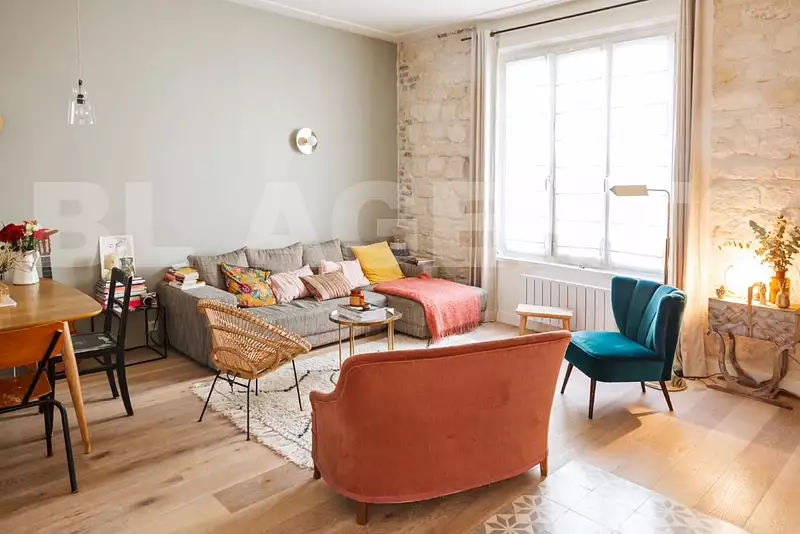 Entièrement rénové avec goût et matériaux de qualité, il se compose d'un séjour lumineux, d'une chambre, d'un bureau pouvant faire office de seconde chambre, d'une cuisine aménagée et équipée, d'une salle d'eau, ainsi que de WC séparés avec lave-mains.