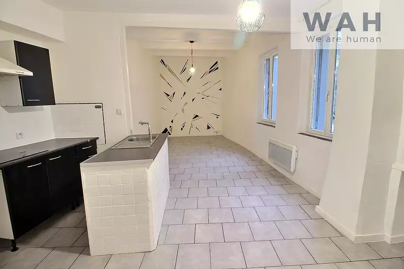Il se situe au deuxième étage d'un immeuble de 3 étages. Il est composé d'un salon-séjour, d'une cuisine ouverte semi-équipée, deux chambres, une salle d'eau avec wc.
