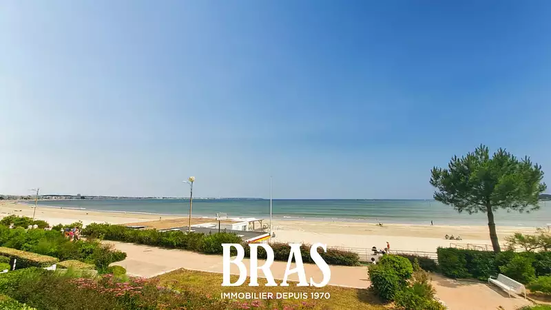 Face à l'Océan, sur l'esplanade Benoit, votre agence BRAS immobilier vous propose un appartement traversant, au premier étage d'une résidence sécurisée et comprenant une entrée avec placards, une salle de séjour face mer avec balcon, une salle d'eau, wc, cuisine et chambre avec balcon, côté cour.