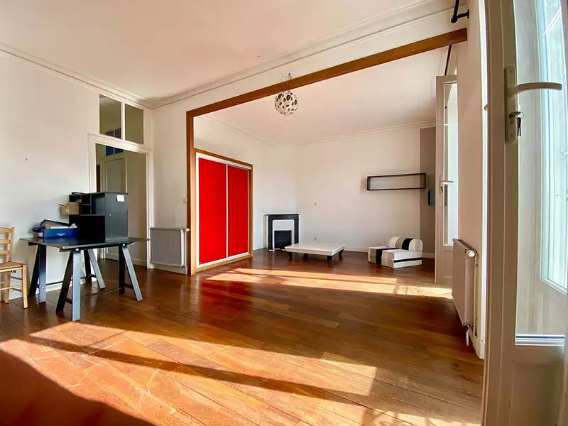 Dans ce quartier très prisé de Nantes, appartement ancien bénéficiant d'une belle hauteur sous plafond , TRAVERSANT, d'environ 53m2 , au 2eme étage sur 4, exposé sud - Un séjour baigné de lumière, une cuisine aménagée indépendante, une chambre avec salle d'eau - w-c séparés et placard de rangement.