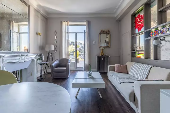 Séjour lumineux et raffiné : cheminée décorative en marbre, vitraux signés, hauteurs sous plafonds, moulures, des finitions élégantes qui font toute la différence. Cuisine contemporaine et équipée : des matériaux de qualité, une conception optimisée pour un quotidien sans contrainte. Chambre spacieuse avec dressing : un cocon ouvrant sur une véritable salle d'eau haut de gamme, équipée d'une baignoire et d'une douche. Des prestations premium : fibre optique, rangements intégrés et discrets, doubles vitrages et volets roulants électriques.