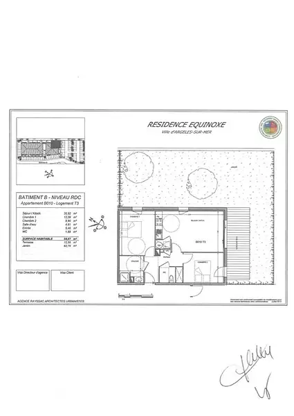 dans une résidence propre et sécurisée proche de la mer, du village et au calme, un appartement t3 rdj de 54,87 m2 avec terrasse de 12m2 et jardin de 82m2 exposé sud composé de 2 chambres 1 salle de bain 1 wc séparé + placards et 2 places de parking privatives l'appartement est vide et dans un état impeccable n'hésitez pas à me contacter pour plus d'infos et recevoir la vidéo 3D