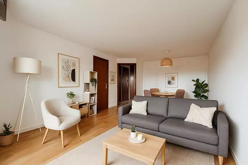 Situé au deuxième et dernier étage d’un immeuble typique des années 60-70, composé de seulement trois lots, cet appartement de plus de 54 m² séduit par sa luminosité et sa localisation idéale.