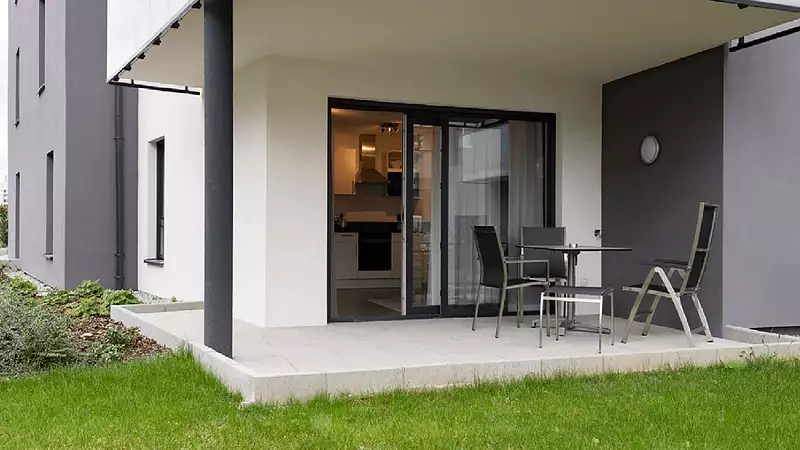 Idéalement situé, proche du Parc des Eaux Vives, appartement de type 2 pièces d'une superficie de 54 m² au rez-de-chaussée avec une terrasse de 15 m², comprenant :