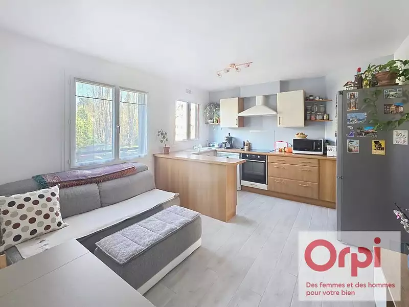 Il comprend une entrée aménagée, une pièce de vie avec cuisine ouverte aménagée, salle de bains avec fenêtre, wc séparé, deux chambres (13.26 m² et 11.24 m²).