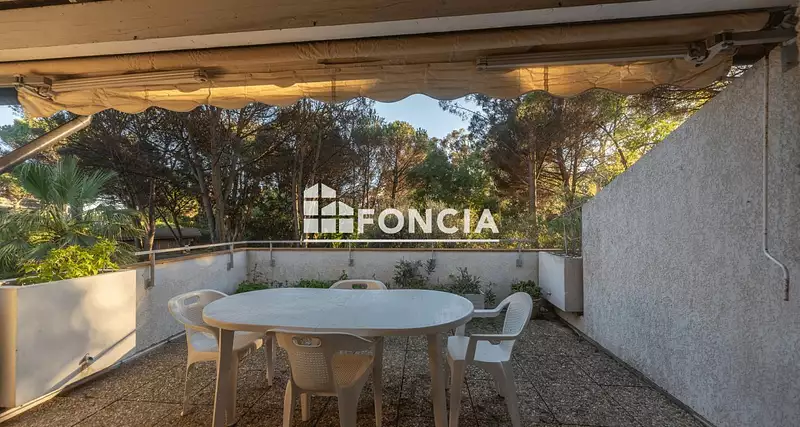Secteur de Cavalière, avec un accès de plain-pied à l'appartement, beau T3 en duplex comprenant un séjour avec coin cuisine ouvrant sur une terrasse de 18 m² offrant une belle vue dégagée, une chambre, une salle d'eau avec WC et des rangements.