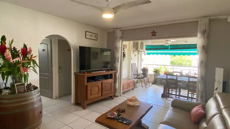 A deux pas de la plage aux Trois Ilets, ce bien de 54 m2+varangue de 14 m2 équipée d'un volet