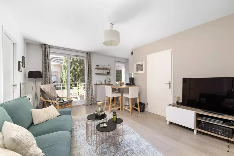 Dès l'entrée, vous serez séduit par une belle pièce à vivre spacieuse et lumineuse, dotée d'une cuisine moderne entièrement équipée, le tout ouvert sur un agréable balcon idéal pour vos moments de détente.