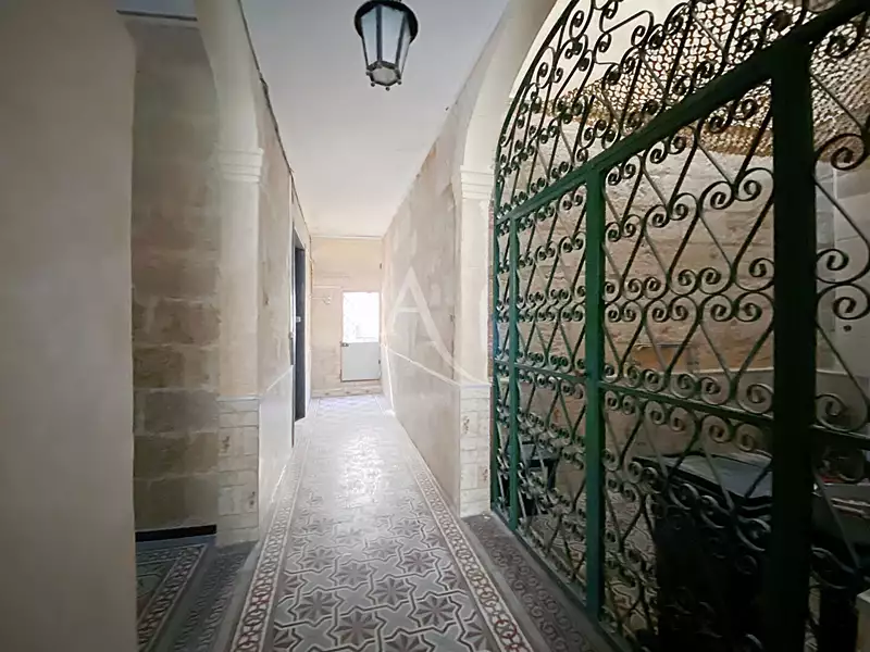Dans une ancienne bâtisse historique de Vauvert appartement T2 à rafraichir comprenant au rez de chaussée une pièce de vie avec coin cuisine, à l'étage une chambre, une salle de bain avec WC,